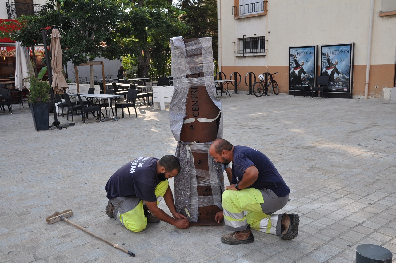 La Vila de Perpinyà ha instal·lat aquest matí el monòlit que Amics dels Museus Dalí cedeix a la ciutat de Perpinyà per recordar el viatge triomfal de Salvador Dalí el 27 d'agost de 1965 entre Ceret i l'estació de Perpinyà, que va batejar llavors com "el Centre del Món".