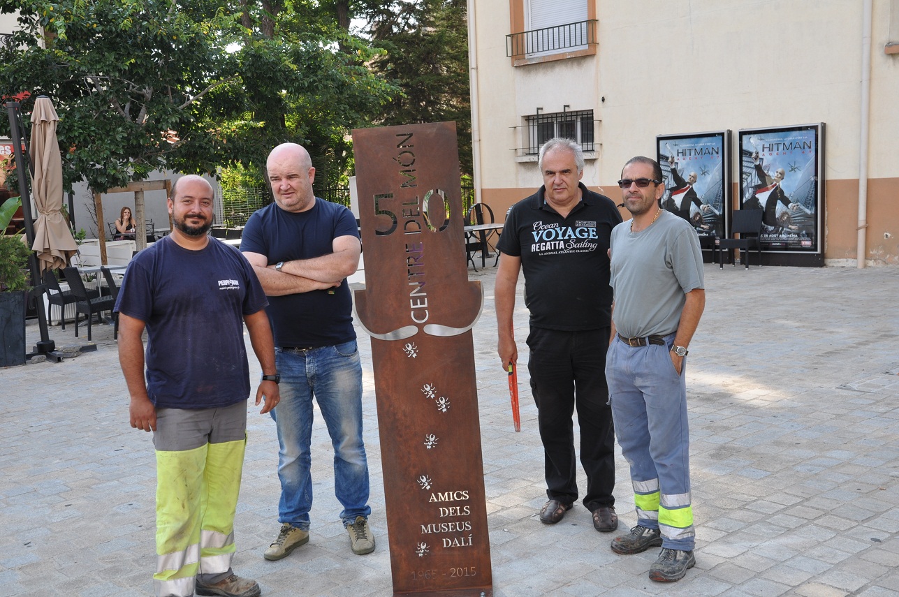 Instal·lació del monòlit recordatori dels 50 anys del Centre del Món